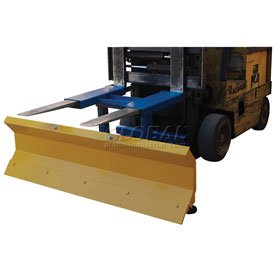 FORK TRUCK SNOW PLOW Easily convert your forklift into a snow plow using this fork truck attachment. Durable steel snow plow easily attaches to forks on forklift trucks. Manual pivot mechanism allows angle plowing in either direction to divert snow and debris towards the curb or alongside a building. Floating pads allow adjustment of plowing height. Adjustable springs allow blade to pivot back for safety. Pass-through fork tubes keep weight back towards fork truck mast. Locking pins secure snow plow in place. Fork lift opening is 24"L x 7-1/2"W x 2-1/2"H. Includes a replaceable lower blade.